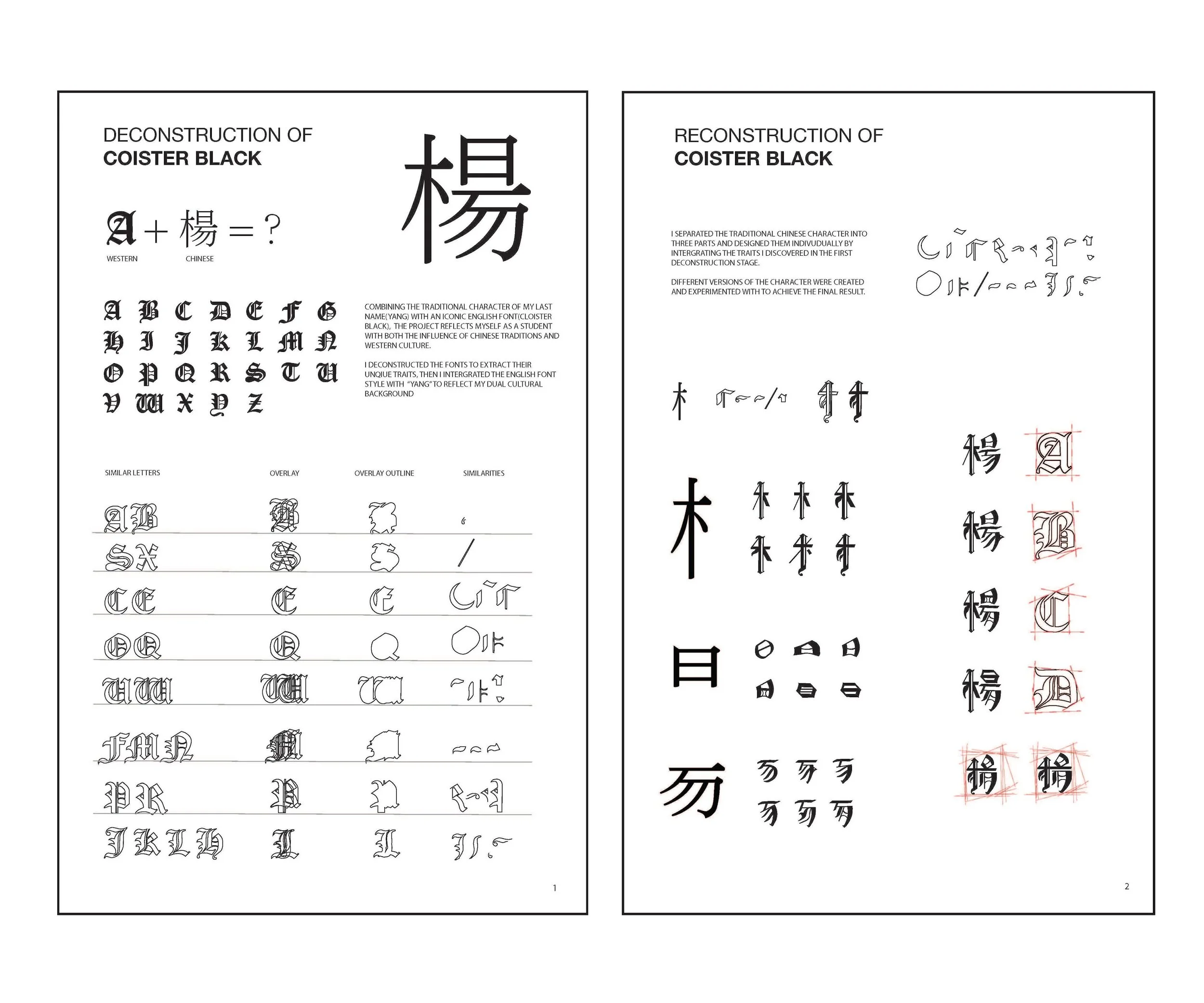 I deconstructed the font to extract their unique traits, then I integrated the english font style with “Yang” to reflect my dual cultural Background.